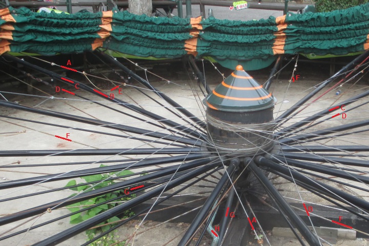 F -- Stationary radial rods (18+), to keep the ride hub centered.
